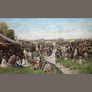 Монументальная картина В. Маковского “Ярмарка (Малороссия)” 1885 года (холст, масло 113х 180 см) является самой дорогой из представленных лотов с оценочной стоимостью 1.5-2 млн. фунтов.